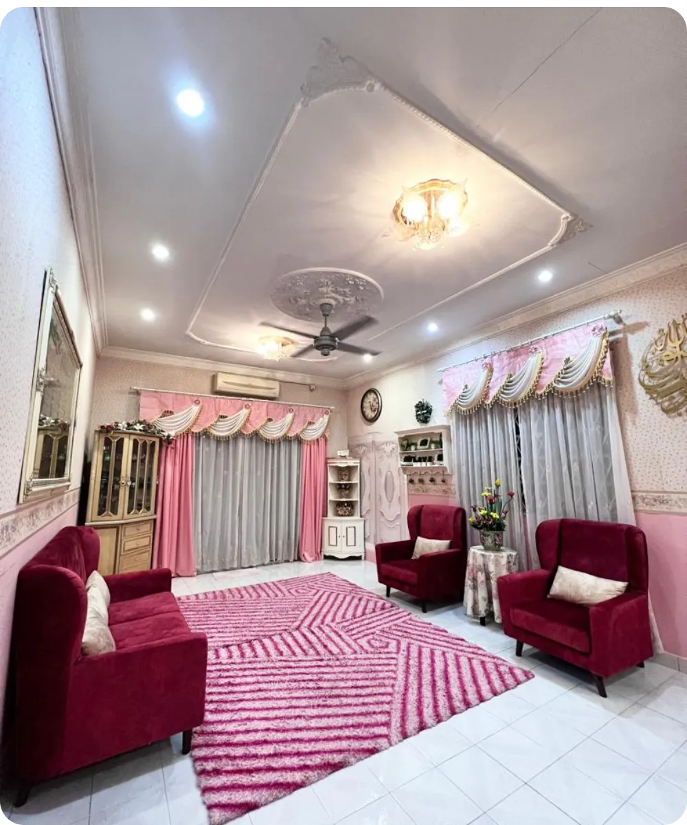Rumah corner lot luas sesuai untuk keluarga besar, rombongan, atau peserta acara. Lengkap dengan fasiliti moden dan parking luas yang boleh memuatkan sehingga 12 kereta!